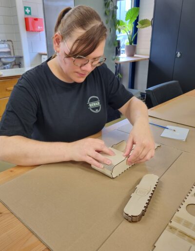 Onze sfeerimpressie geeft een kijkje in het dagelijks leven op onze werkplek, waar naast alle werkzaamheden als laseren, plotteren, werken met de textielpers en de 3D-printers altijd ruimte is voor gezelligheid en samenzijn. Tijdens én buiten de werkdagen wordt er samen gelachen, gepraat en ondersteund, waardoor iedereen zich snel thuis voelt. Met veel aandacht en zorg worden er mooie producten gemaakt; iedere deelnemer levert een unieke bijdrage, waardoor elk resultaat een eigen verhaal krijgt. Op woensdag is het wekelijkse Nijkerks kadootje een creatieve highlight, met allerlei leuke opdrachten waar deelnemers hun talenten kunnen laten zien.